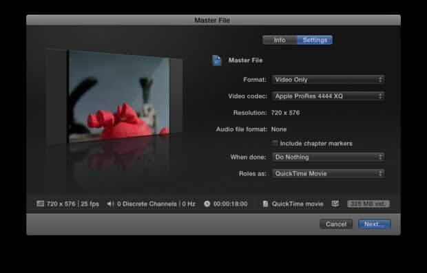 Todas estas imágenes de 1 marco editadas juntos son algo difíciles de manejar para trabajar con, por lo que podría ser una buena idea para representar la secuencia hacia fuera en un nuevo archivo. Si esta secuencia de movimiento de la parada es parte de un proyecto que aún necesita edición, es una buena elección para elegir un entre formato de video como MPEG IMX (50 Mbps) o Apple ProRes 4444 XQ. Simplemente procesar este archivo usando el comando de menú