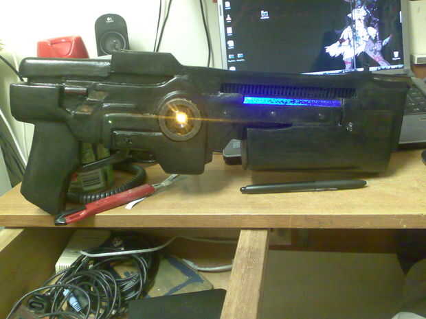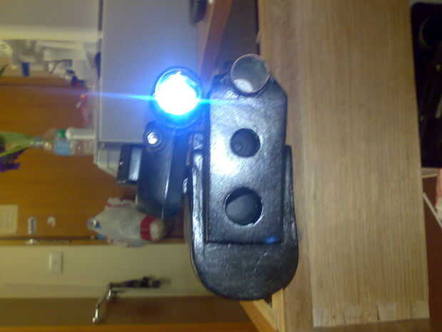 Entregar el arma todo un curso con un pincel seco para quitar todo el polvo y las grietas y así sucesivamente. Ahora sólo suspenderlo hasta en alguna cadena fuera preferentemente en un día soleado agradable. Le dan una agradable cubierta incluso de la cartilla. Una vez seca la imprimación Retire la cinta adhesiva y luego volver a aplicar cinta fresca, se pone gruesa y difícil de quitar las capas más pones en. Usted puede colocar una capa de base en plata, luego deje secar nuevamente y colocar una capa negra. Retire la cinta adhesiva y revisar sus uniones y las costuras para asegurarse de que no pela en capas se puede aplicar cinta de enmascarar más si lo desea, pero realmente no necesita. Puede utilizar papel de lija para frotar nuevamente el negro y revelar la plata y usando un cepillo pequeño puede Agregar plata rayones donde le parezca. Si usted quiere saber cómo creé que, que va escribiendo y shortley instructable
