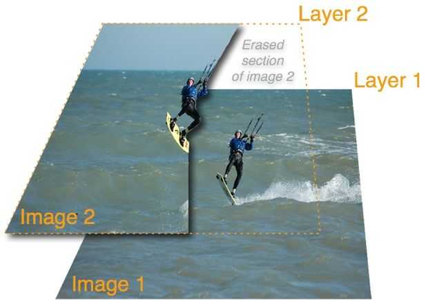 En la imagen de ejemplo donde prácticamente he cortado imagen dos por la mitad y siguió el contorno del jinete de bastante cerca, no debe ser tan exacto. Usted puede fijar su borrador al 50% y las dos imágenes se mezclan, probarlo, verás lo que quiero decir.