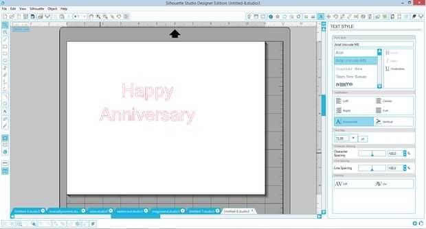 Después de escribir tu frase en el software de estudio de la silueta, de su redacción, haga clic en y luego haga clic en la herramienta de tipo superior (véase la nota de colocación). Una vez abierto el menú de escritura, haga clic en su selección de palabra y cambiar la fuente a su elección de fuente elegido.
