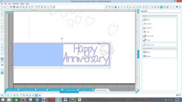 Para agregar un pequeño detalle extra, yo soy soldadura sobre dos formas de corazón que tenía en mi biblioteca en el espacio vacío. Puede utilizar globos, números, remolinos, swooshes, y varios otros decoración basado en su propósito de tarjeta.