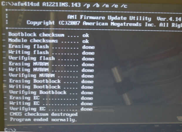 Si usted consigue en apuro y las BIOS flash falla por cualquier razón, siempre y cuando el sistema todavía va a arrancar (por lo menos a una UFD) usted probablemente puede obtener usted mismo fuera de problemas por volver a grabar la BIOS con la copia de seguridad. Puede buscar en la Web para obtener información sobre mensajes de error que del BIOS flash utility comparte con usted, si eso ocurre. Usted también encontrará el de Wim BIOS descargas de cuña sitio llena de información útil y herramientas útiles y de diagnóstico.