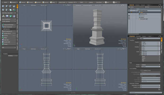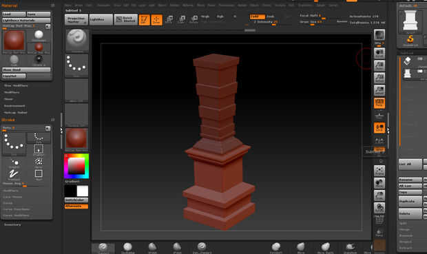 En Modo hice una maqueta de 20cm de altura, sólo un cuadro realmente. Yo entonces (como seguimiento) dividir para arriba en las secciones que puedes ver en la estatua, y asegurar que es todo simétrico. Así que ahora tengo una base decente a trabajar. Exportar esto a Zbrush para continuar el proceso de diseño. ZBrush es muy parecido a esculpir algo con arcilla. Una tableta de Wacom es muy útil para este propósito pero se puede también hacer con un ratón normal aunque, pero trabajando con una tableta es más intuitivo y sensible, en mi opinión.