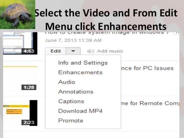 Paso 3: Ahora hay que seleccionar el vídeo y desde menú Edición haga clic en mejoras