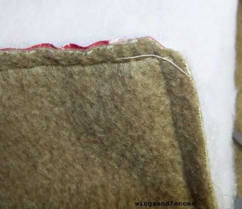 Para coser, empecé en la esquina de la aleta, cosida longitudinal en la parte inferior, a través del fondo y volver por el otro lado, luego a través de la tapa a medio camino. Esto le da suficiente espacio para que vuelva cuando esté listo, y menos para coser manualmente. Una vez más, asegúrese de que el bolsillo se gira correctamente y poner plano y apretado para que no arrugarse cuando el revés.