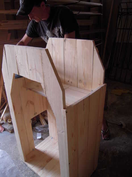 Paso 1. Dibujos que después creamos un casco de madera. Hemos utilizado el pino grueso 20 mm.