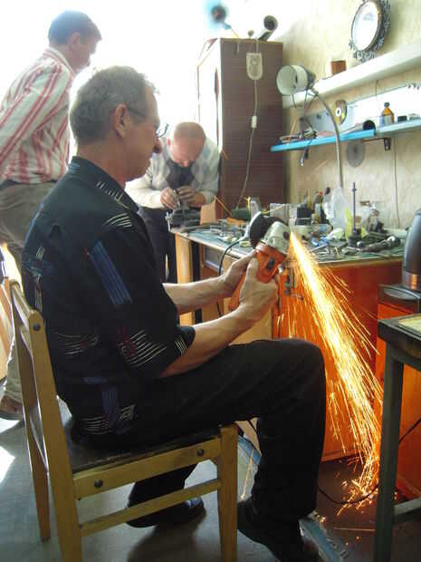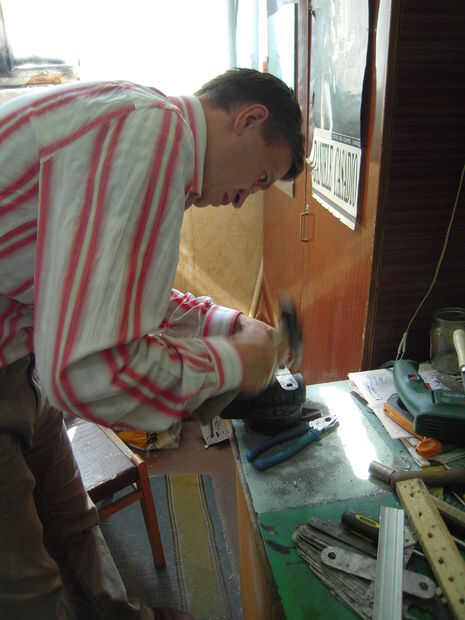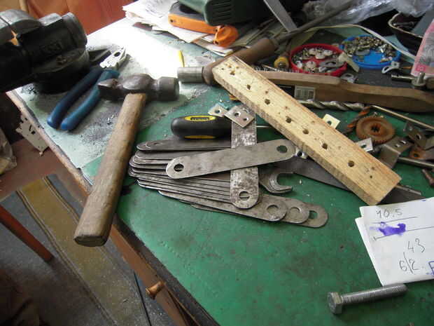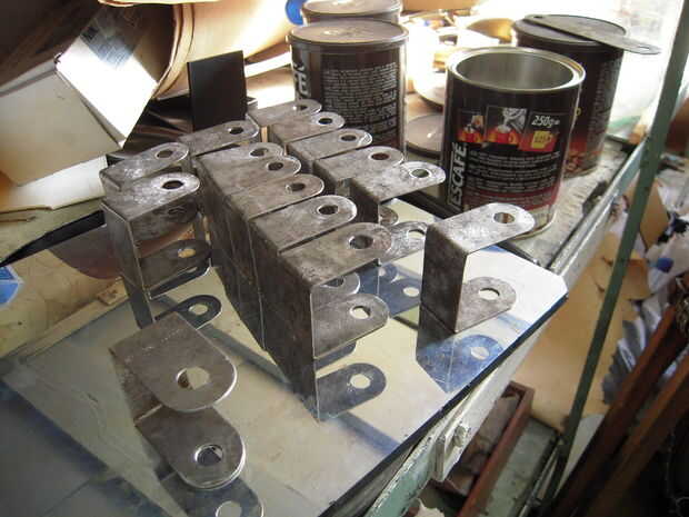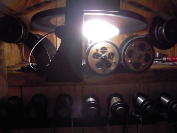 Paso 2. Creamos todos los detalles necesarios. Comenzamos con la fabricación de los carretes de película y sus fijaciones. En total, esta unidad es 18 bobinas dispuestas en dos filas. Están obligados a la unidad de la película. Los montajes fueron cortados de acero. Todos los elementos son ensamblados a mano.