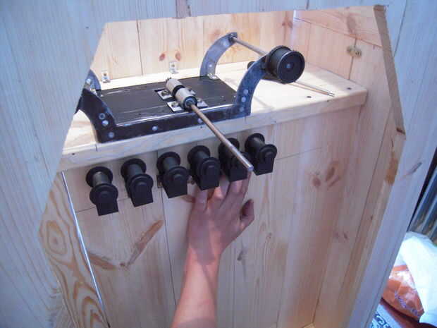 Paso 4. Luego fije el carrete y un bloque mecánico en una base de madera. Se trata de trabajo muy preciso.