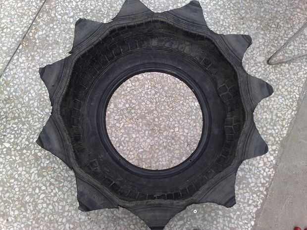 El proceso más importante sobre este instructable. Este proceso es muy difícil así que mucho cuidado. Ahora doble sobre el neumático después de esto usted conseguirá un diseño único del neumático.