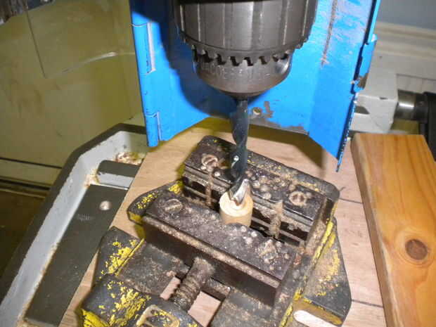 • Utilice un gancho de banco y Sierra junior para cortar una sección larga de 20mm de la clavija de madera Ø15mm, luego Lije los extremos planos.
