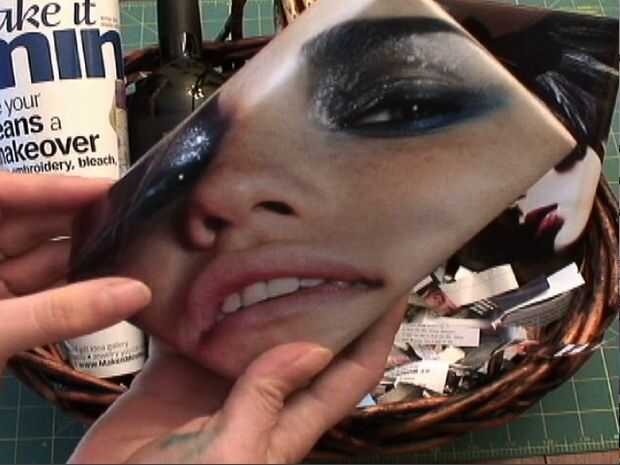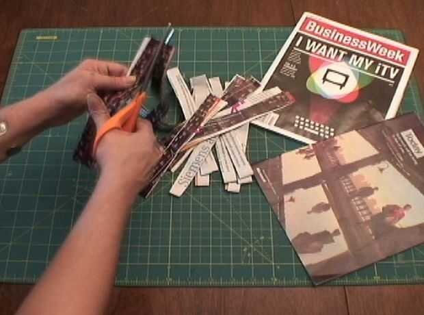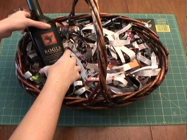 El fondo de la canasta con las tiras de la materia y empezar a añadir cosas.