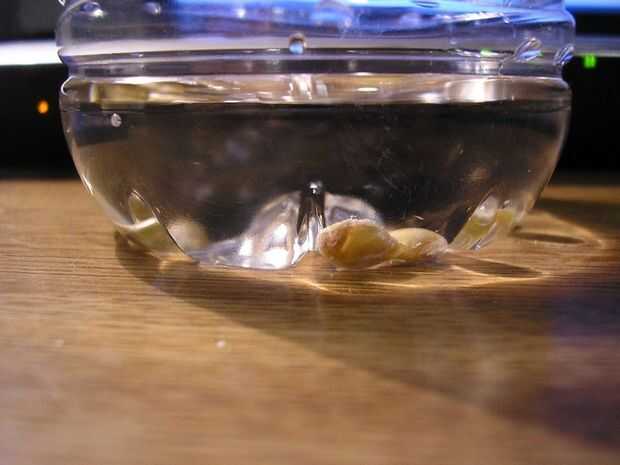 Poner las semillas en la parte inferior de la botella de agua con un poco de agua. Espere 24 horas. Después de 24 horas, tirar las semillas que todavía están flotando en la parte superior. Las semillas muertas y ningún punto en espera en ellas.