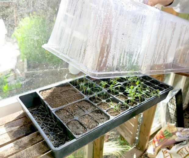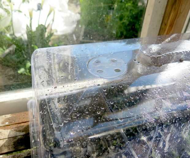 Poner la bandeja de plantaciones en un lugar soleado brillante, (aka tibio) y cubrir con una cubierta de la bandeja oficial o un pedazo de vidrio, plexi o envoltura de plástico para atrapar el calor y la humedad, creando un mini invernadero. Asegúrese de dejar libre de agujeros o un poco de espacio entre el envase y el vidrio ya que es mejor que el aire fresco introducido al medio ambiente por lo que no hay estancamiento y potencialmente mohoso.