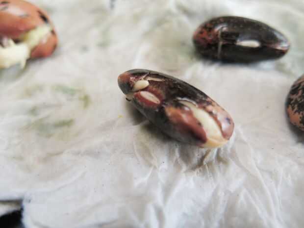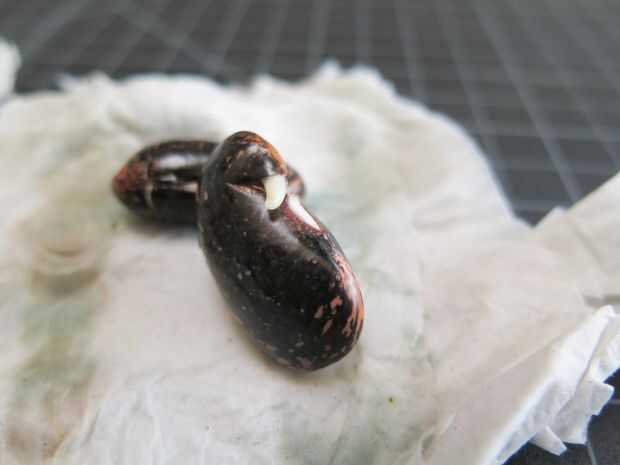Puede disecar para ver las pequeña plúmulas (hojas de bebés), o ahora transferir al suelo, ver la semilla se levantan y liberar las dos primeras hojas.