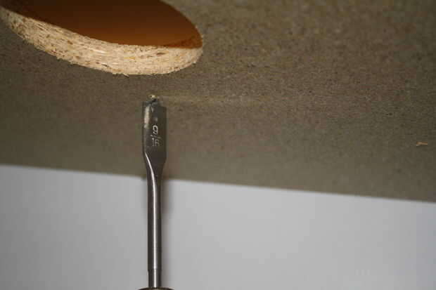 Foto 2: perforar un agujero centrado entre cada zona inferior y el estante superior del armario.