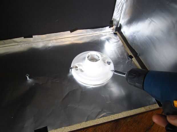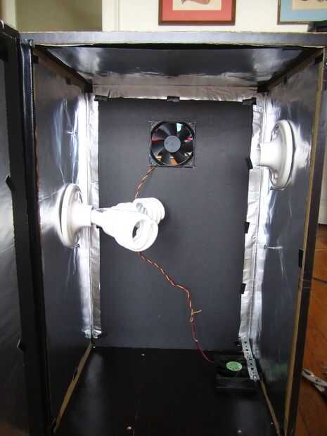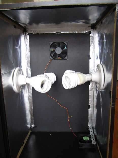 en la foto de arriba usted puede ver que este cuadro puede acomodar hasta 4 x 100W igual CFLs, extinción de 400Watts de luz. se trata de un montón de luz de 1 planta sobre todo con la ayuda de la hoja/de la pintura. pero para un verdadero principiante va a utilizar sólo 2 x 100W CLFs. una buena regla del pulgar es 100W/planta.