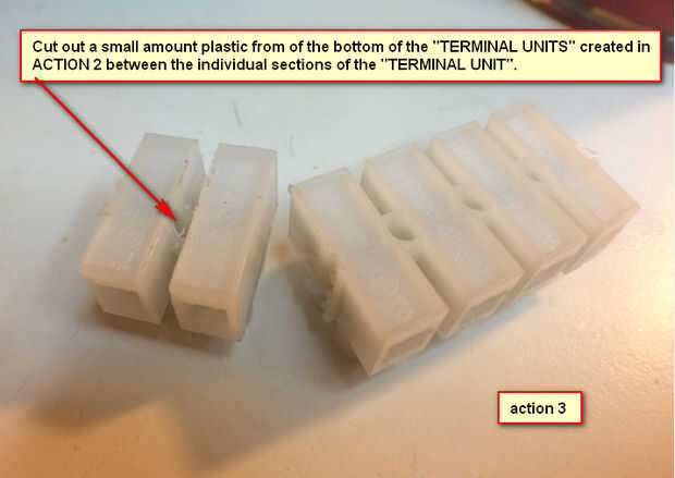 Cortar un plástico pequeña cantidad de la parte inferior de las "unidades terminales" creado en acción 2 entre las secciones individuales de la "unidad de TERMINAL".