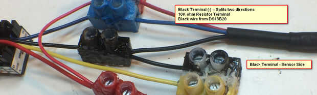 Negro está conectado cable del DS18B20 lado Sensor de solo negro Terminal así