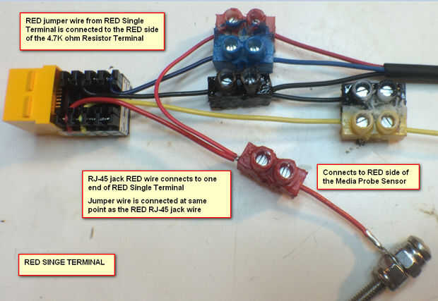 Se conecta al lado rojo del Sensor de sonda de los medios de comunicación. (No importa que tornillo es usado como otro es tratada como la conexión de tornillo del lado de señal)