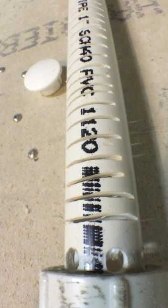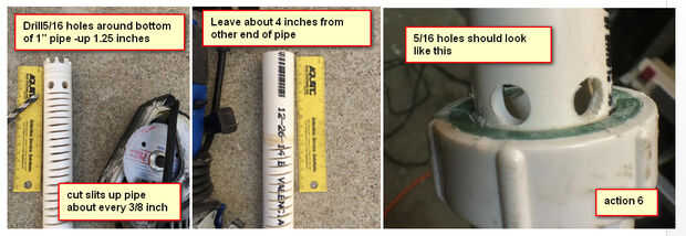 DEJAR las aberturas cerca de 4 pulgadas por debajo del otro extremo de la tubería como el limos se cortan pasando la tubería sobre cada pulgada de 3/8.