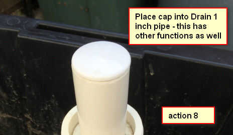 El tapón va en la parte superior de la tubería de desagüe de 1 pulgada que sale la cama de crecimiento. Se necesitarán algunos presentación del enchufe por lo que se puede sacar en un momento posterior. Sin la presentación del enchufe no podrían sacarse en la demanda.