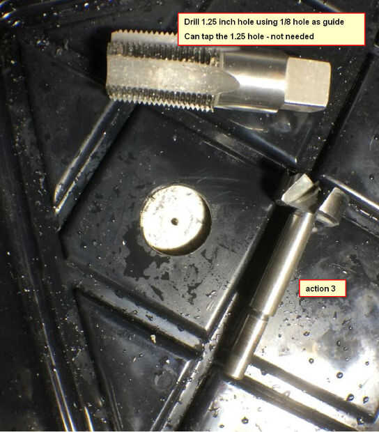 1,25 pulgadas de perforación utilice el orificio piloto en acción 2 como guía.
