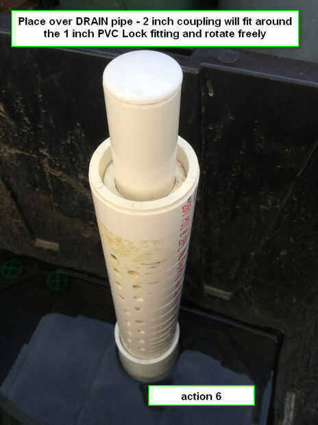 Lugar sobre el tubo de desagüe - enganche de 2 pulgadas se forma alrededor de la instalación de la cerradura de 1 pulgada PVC y girar libremente.