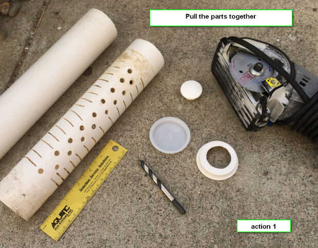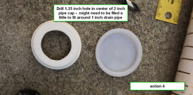 Taladro de 1,25 pulgadas en el centro de la tapa de tubo de 2 pulgadas - deba presentarse un poco para encajar el tubo de drenaje de alrededor 1 pulgada