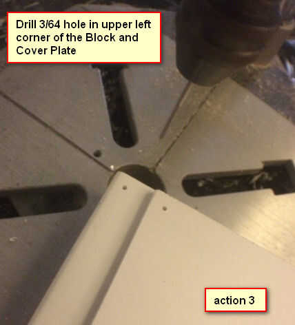Taladro 3/64 en la esquina superior izquierda del bloque y la placa de la cubierta.