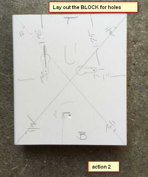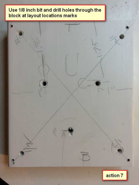 Usar 1/8 pulgadas poco y haga agujeros en el bloque a disposición lugares marcas.