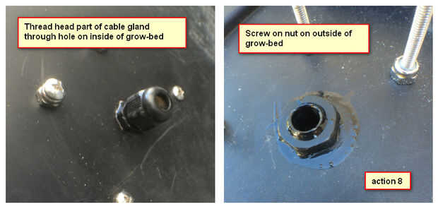 Del hilo de rosca principal parte de la glándula de cable a través del orificio en dentro de la cama de crecimiento.