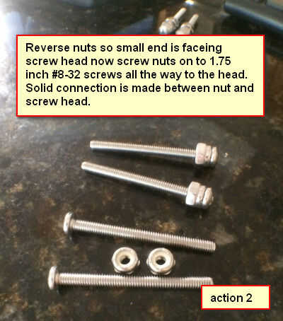 Atornille las tuercas a 1,75 pulgadas tornillos #8-32 a la cabeza.