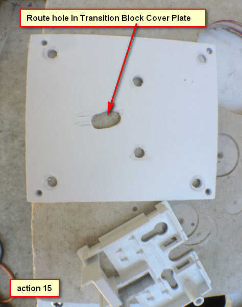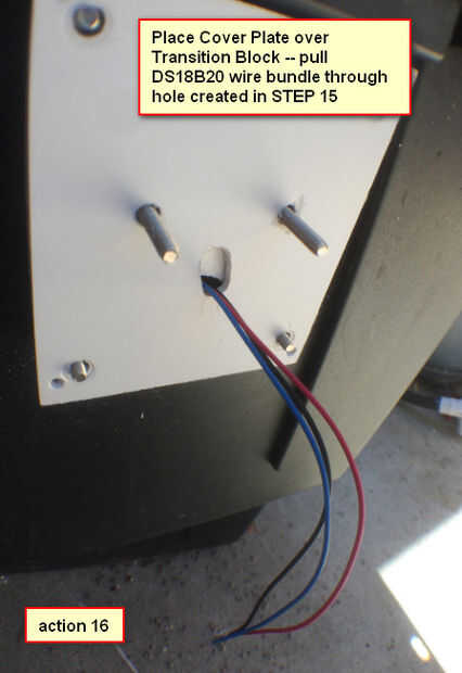 Coloque la placa de cubierta sobre el bloque de transición--conjunto de cable de tirón DS18B20 orificio creado en el paso 15.