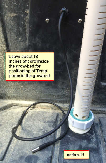 Deje aproximadamente 18 pulgadas de cable dentro de la cama de crecimiento para la colocación de la sonda de Temp en la growbed.