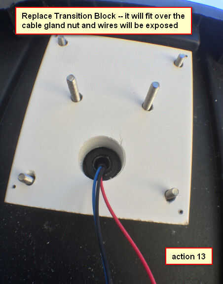 Reemplazar transición bloque--que se ajusta sobre la tuerca de glándula de cable y los cables se expondrá.