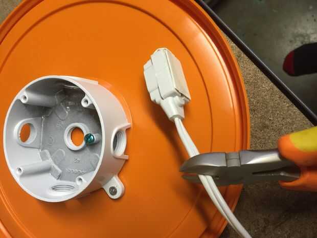 Primero fije la caja de luz redondeada en la tapa con algunos tornillos. Luego conectar la luz según el código de construcción local... Yo no soy una electrificación por lo que acabo de utilizar el cable de extensión y corte el extremo hembra luego conectado a la lámpara. Me aseguré de aísle todas las conexiones y comprobé la luz para asegurarse de que funcionaba antes de instalar.