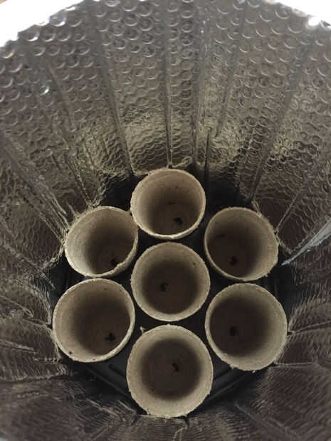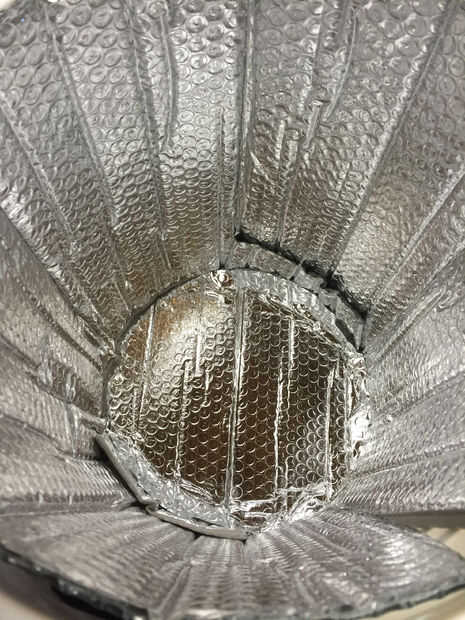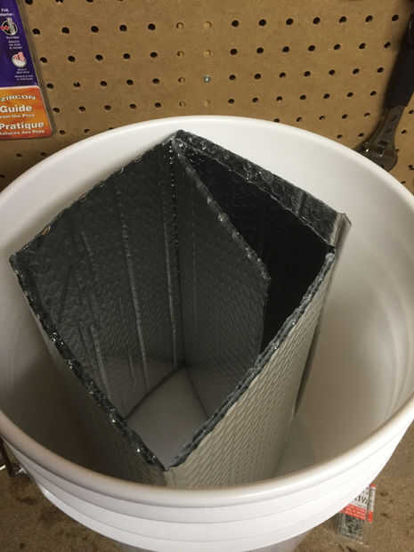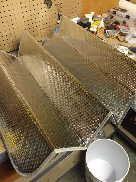 Porque las plantas anhelan la luz y se preforma mejores con tanta luz como sea posible quería maximizar la luz en el cubo. Para hacer esto usado un deflector de sol de parabrisas de coche a 1 mantener la temperatura del cubo para arriba (LED no tienen poco o ningún calor) y 2 para maximizar la reflexión de la luz dentro de la cubeta.
