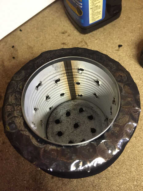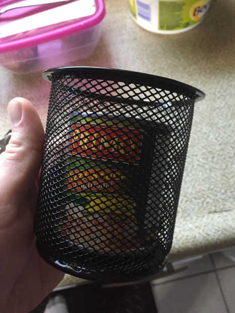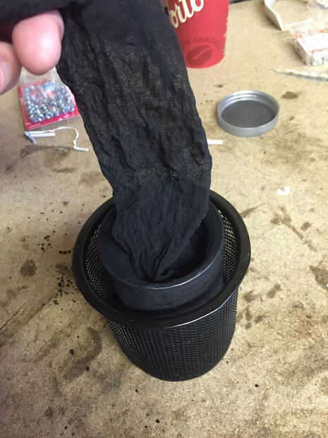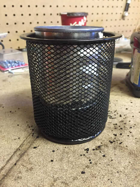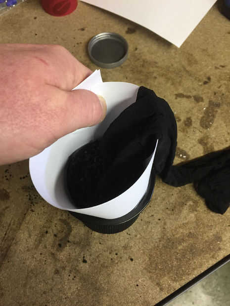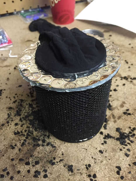 A continuación haz un pequeño cubilete, lata pequeña de salsa de pizza, tubería de PVC y unas pantimedias. Ahora puede vaciar el contenido de la salsa de la pizza hacia fuera (guardar o hacer una pizza) y múltiples perforaciones en la salsa de pizza vacía. Ahora coloque la lata en el cubilete y ver cómo encaja. Añadir algunos carbono para el portalápices para levantar la pizza puede para ser nivel con la parte superior del soporte del lápiz. Coloque la lata de pizza (mina grabado para que no dañar la manguera de panty) en la manguera de panty luego en portalápices y empuje que el Panti en la pizza puede. Agregue que el carbón a la mitad de la pizza puede encima de la manguera de panty. Ahora puede levantar la manguera de panty y el carbono se caerá el apagado la manguera panty luego alrededor de los lados de la pizza puede llenar la caja de lápiz hacia arriba.