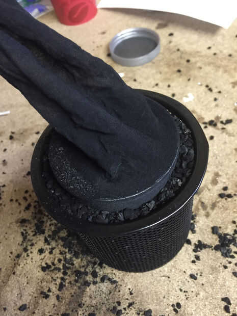 Con cualquier huerto interior existe la posibilidad de olores. El pequeño no es muy fuerte pero puede tener un leve mustiness debido al ambiente constantemente húmedo. Para evitar esto he hecho un filtro de carbono que se tire cualquier olores indeseables del aire. Hacer un filtro de carbón también es muy barata y fácil de hacer: