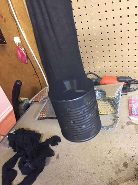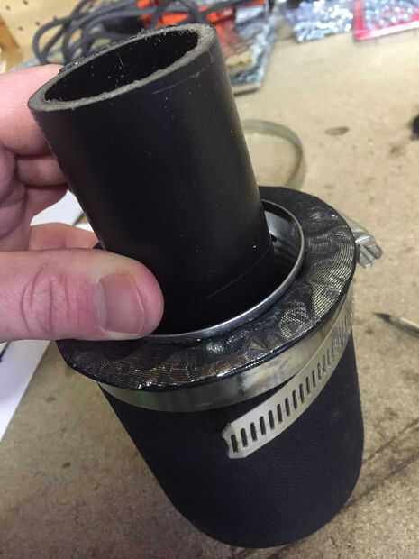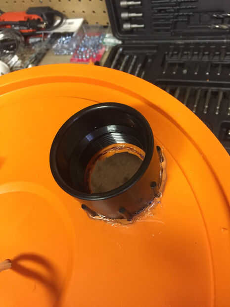 Una vez que tenga la parte del filtro terminado le puede añadir el tubo de PVC y fijarlo a la tapa de la cubeta. El tubo de PVC usé era mucho más pequeño entonces la pizza puede usé cinta aislante para hacer un sellado adecuado.