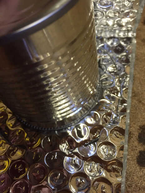Corte un pedazo pequeño de protector de parabrisas para sellar la parte superior luego doblar medias alrededor de la caja de lápiz todo y pizza pueden asegurar el carbón en su lugar.