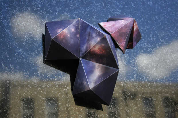 Es fácil de hacer y combinar formas geométricas plegables - cubos, cilindros, esferas, conos y pirámides con digitalmente con texturas. Estas formas se pueden imprimir, construidas como objetos 3D papercraft e instaladas en espacios físicos a diferentes escalas; Unido a las paredes, suspendidas del techo, conectado entre sí en agrupaciones como crecimientos en la arquitectura interior o exterior.