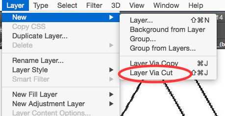 -Con esta selección sigue en activo, elija el menú capa , entonces nueva, entonces Capa vía cortar.