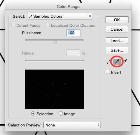 -En el cuadro de la Gama de colores , seleccione el icono de cuentagotas + y haga clic en el arte de línea negro de su forma geométrica.