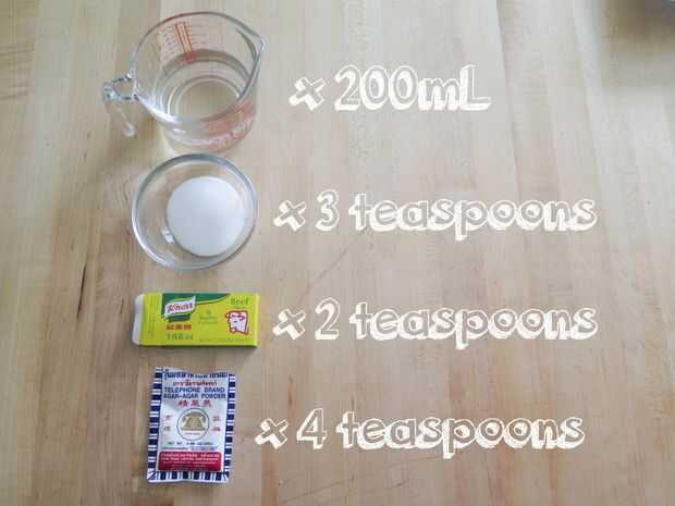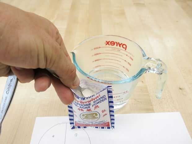 Nota importante: El agar agar que realmente se necesita para disolver completamente, de lo contrario terminas con morcilla al final. Vamos por un gel duro. Si usted necesita, usted puede mezclar todo esto en una estufa mientras el agua está hirviendo para asegurarse de que alcance esa temperatura alta necesaria.