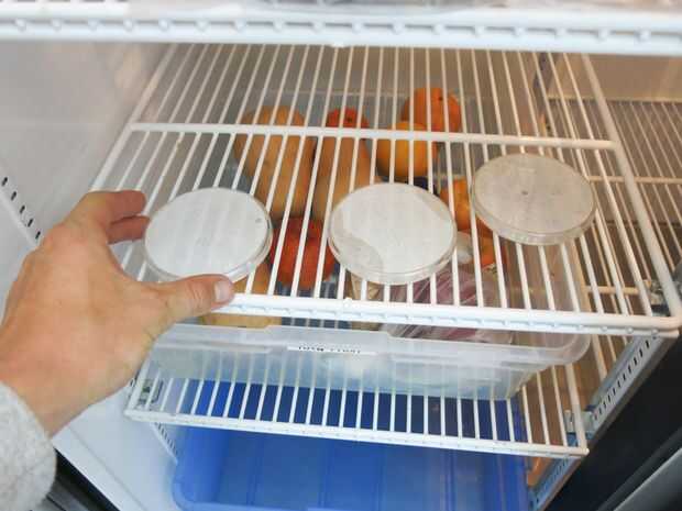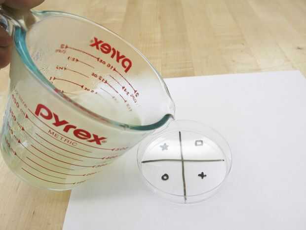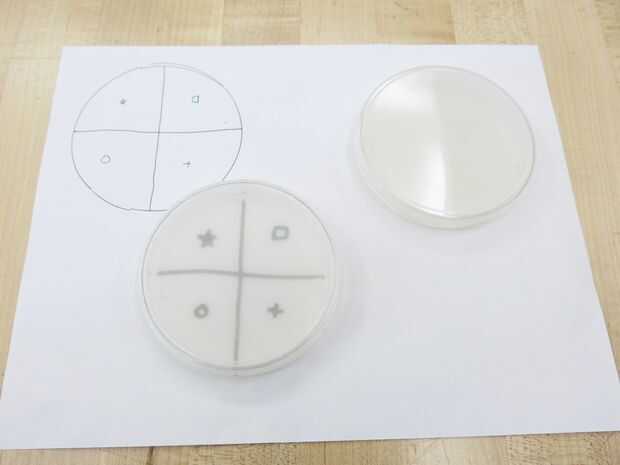 Vierta la mezcla de alimentos en la parte inferior de la placa de Petri por lo que es aproximadamente 1/4" o tan profundo. Volver a colocar la tapa para evitar contaminaciones y luego colocarlos en la nevera para hacer el enfriamiento ir más rápido. Dejar a temperatura ambiente está bien, también, que sólo irá más lento.