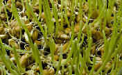 Después de tres días, destapar el wheatgrass y verá poco brotes empiezan a crecer! Coloque la bandeja en una ventana soleada y sproutlings rociando varias veces al día durante 3 días con la niebla. Después de 3 días, mantener la humedad y el crecimiento con riegos regulares - para vaciar el agua de pie.