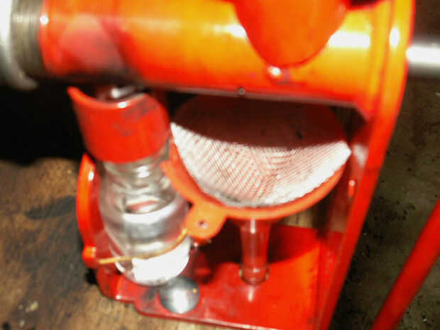 9. poner un colador pequeño o un trozo de malla en un embudo pequeño. Un tubo de plástico se inserta a través del orificio 3 perforé y en un tarro de cristal. Este recogerá el aceite de su semilla