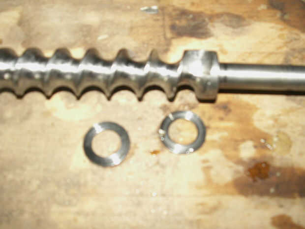 3. después de montar esto en una tabla, luego es lubricar las arandelas con aceite comestible. y deslice hacia la parte posterior de la espiral. Esto se desliza en una manera a través del frente hasta que el eje salga el agujero trasero.