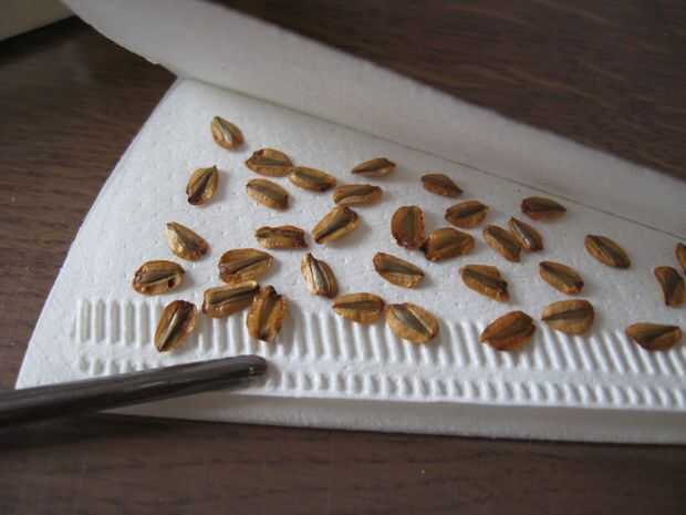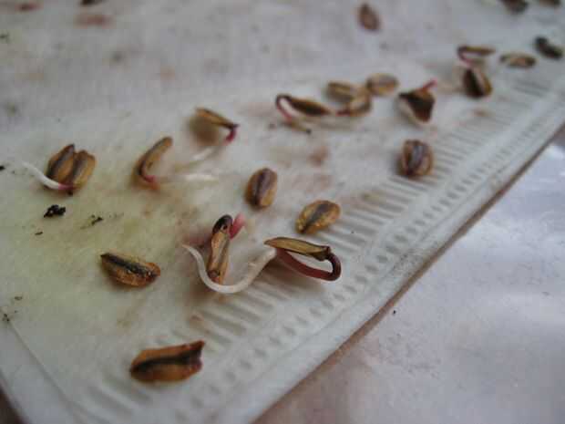 Cuando el tiempo está para arriba, coloque la bolsa en un lugar oscuro a temperatura ambiente. El gradiente de temperatura hará que las semillas broten. Después de algunos días, abra la bolsa y buscar semillas de brotes. Si ves algunos, llevarlos a cabo, será plantar ahora. Poner la bolsa en la sombra y comprobar regularmente nuevas plántulas.